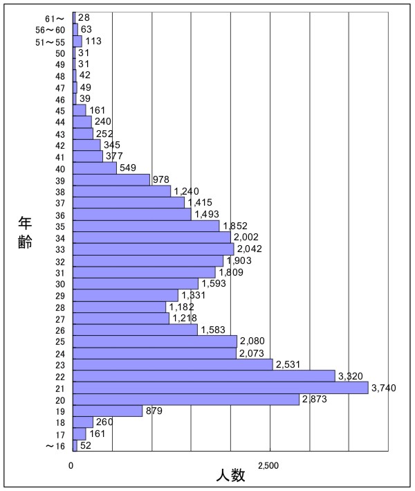 | (登載総員46,303名中、年齢不明を除く41,930名を終戦時年齢に換算) |